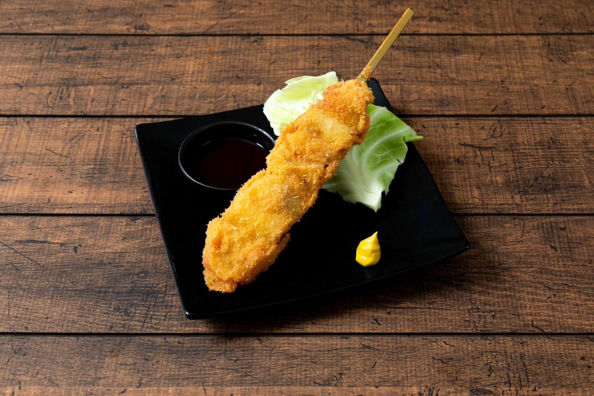 くわえて今回は東日本限定で24cmの大串に刺さった「清流若どりのジャンボチキンカツ串」をご用意しております。