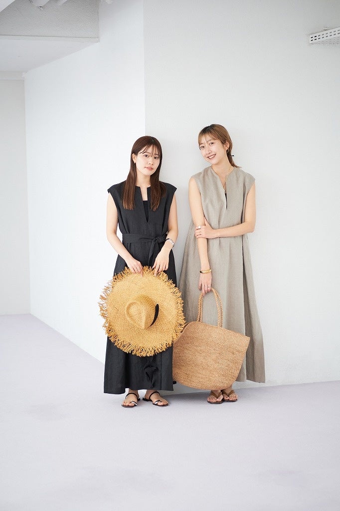 ブランドネームのイメージである南仏の浜辺で「ジャクリーン・ケネディが現代でバカンスを過ごすなら…?」を裏テーマに、気映えするシャツ、ブラウス、そして裏テーマのムードを高めるグッズだちがわきを固めます。