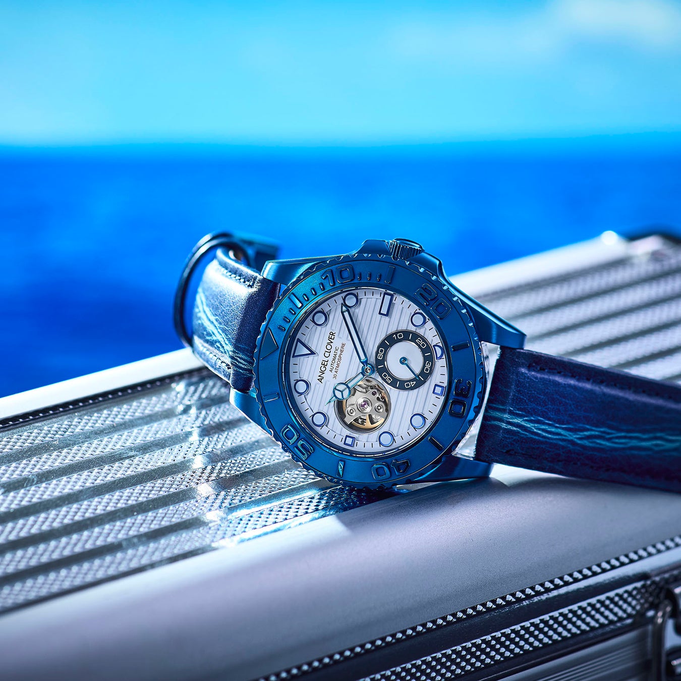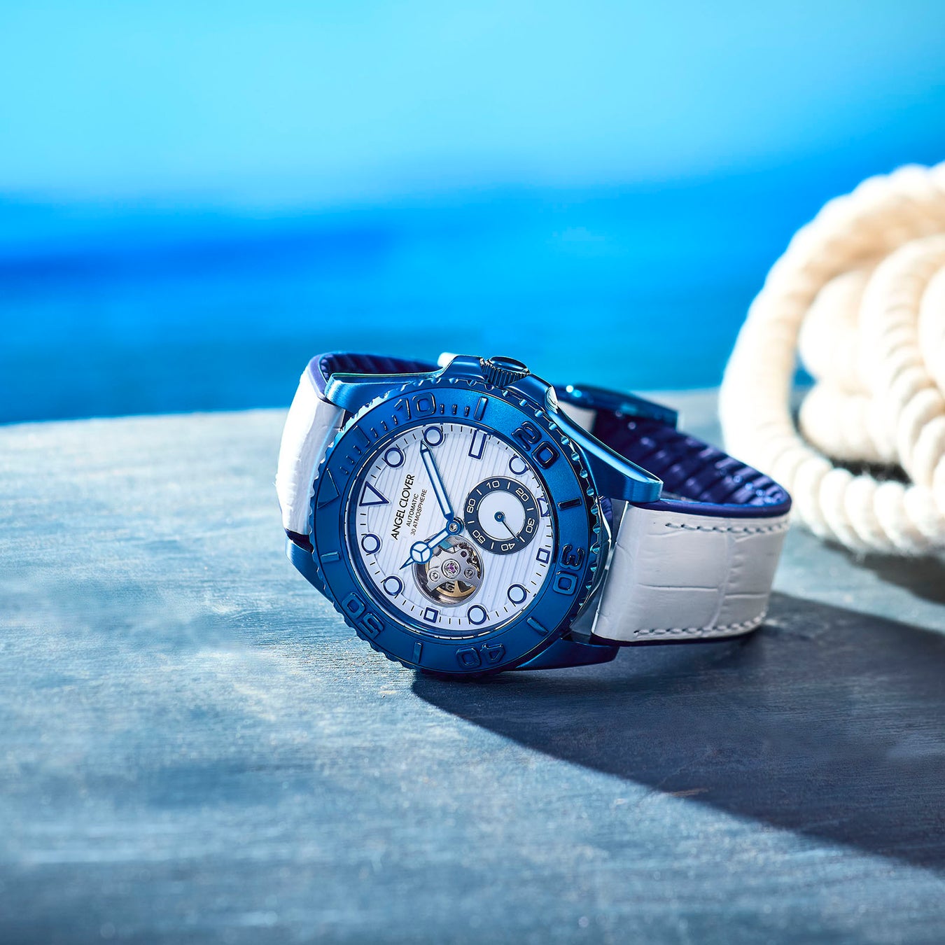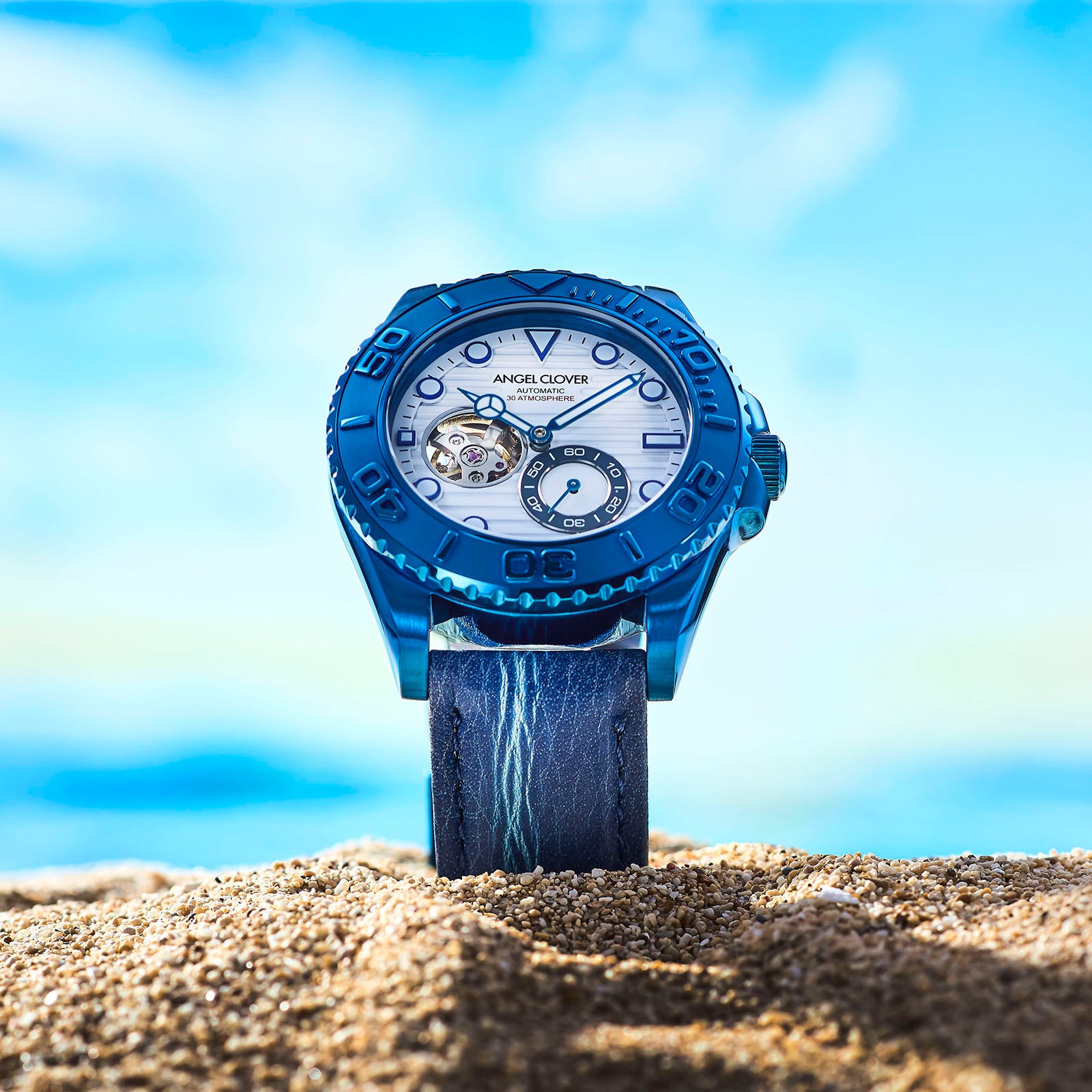 阿波藍染レザーが付属!ANGEL CLOVERから夏の腕元にマリンな青×白が映える30気圧防水の機械式ダイバーズ時計「SEA CRUISE AUTOMATIC」公式オンラインショップ限定モデルを発売。