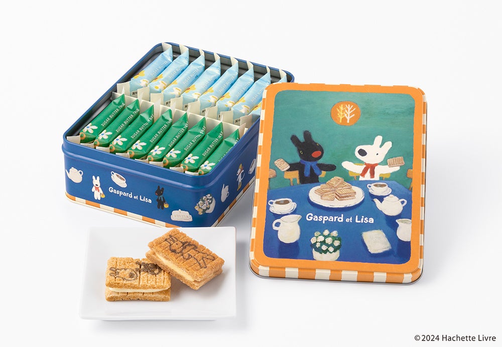 大人気の定番味『シュガーバターサンドの木 リサとガスパール』と季節限定の新作『クリームブリュレ風』の2種類が楽しめる詰合せ。アート缶も、中に入っているお菓子まで全部が「リサとガスパール」デザインなので、食べるのがもったいなくなってしまいそう。サックサクに焼き上げた特製シリアル生地には全5種類の「リサとガスパール」の絵柄がランダムで描かれていますので、何が入っているかはお楽しみに!