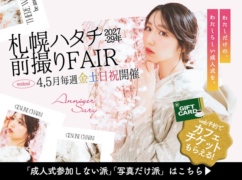 2026年4月、5月は毎週末開催「札幌 成人前撮りフェア」— 新作衣装200着以上入荷、試着しながら最適プランをその場で提案