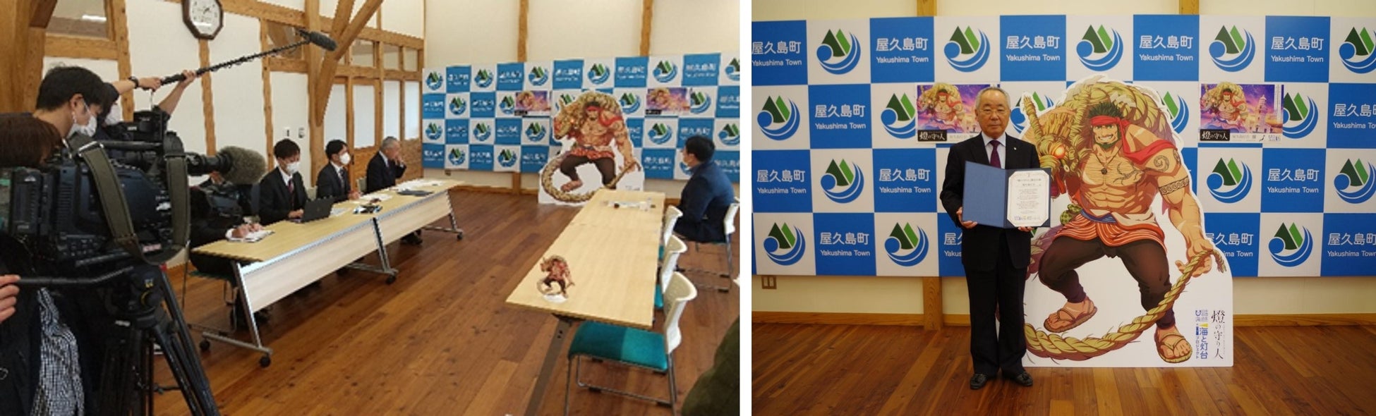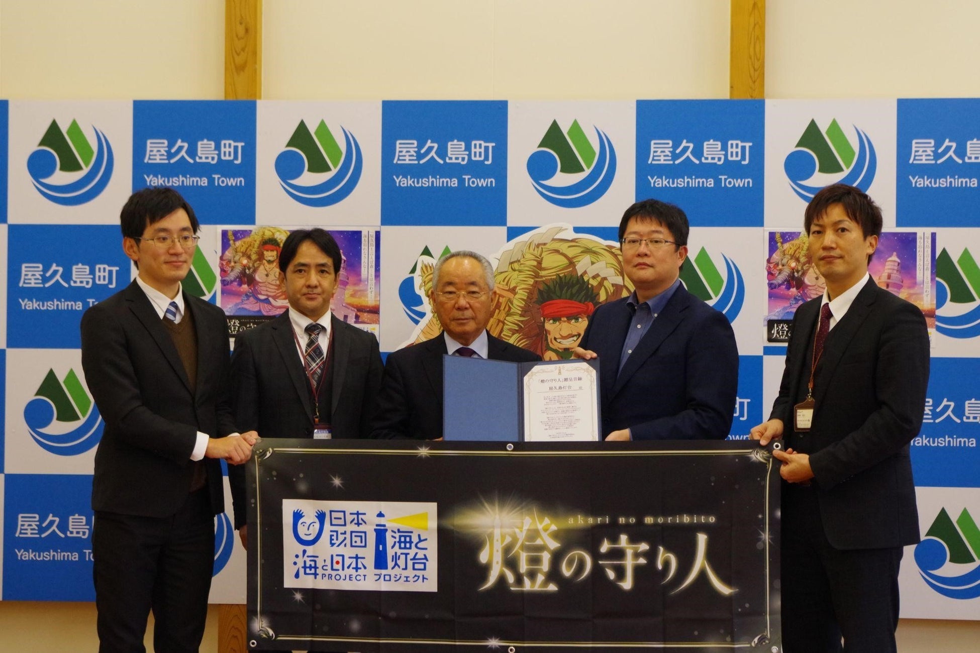 鹿児島県屋久島町「屋久島灯台」を擬人化したキャラクターが完成!「燈の守り人」製作委員会プロデューサーが荒木耕治町長を表敬訪問しキャラクター贈呈式を実施しました