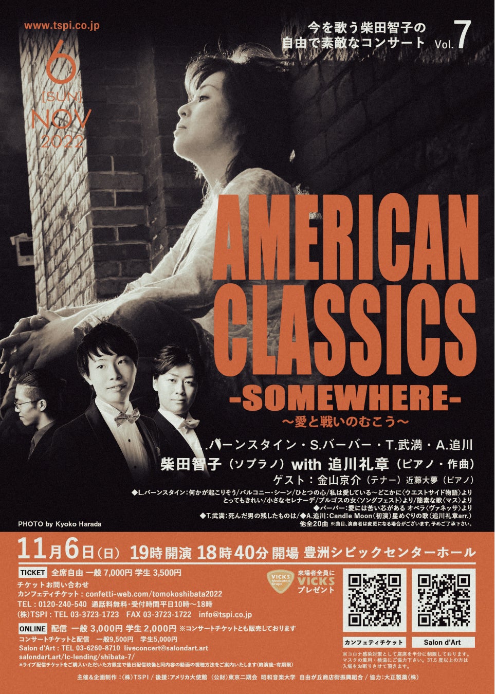 彼が書いた名作ミュージカル「ウエストサイド物語」の“サム ウェア”をメインテーマに掲げたコンサート「AMERICAN CLASSICS」Somewhere ~愛とたたかいのむこう~を開催致します。