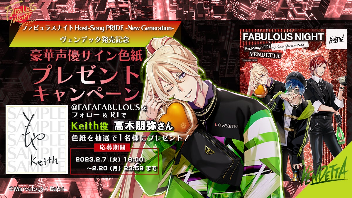 声優直筆サイン色紙プレゼント!CD『ファビュラスナイト』Host-Song PRIDE「ヴェンデッタ」発売記念キャンペーン実施中!