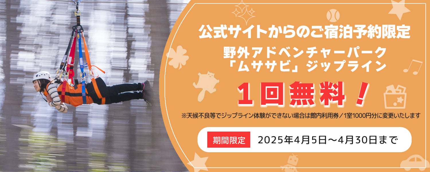 ※天候不良等でジップライン体験ができない場合は館内利用券/1室1000円分に変更いたします