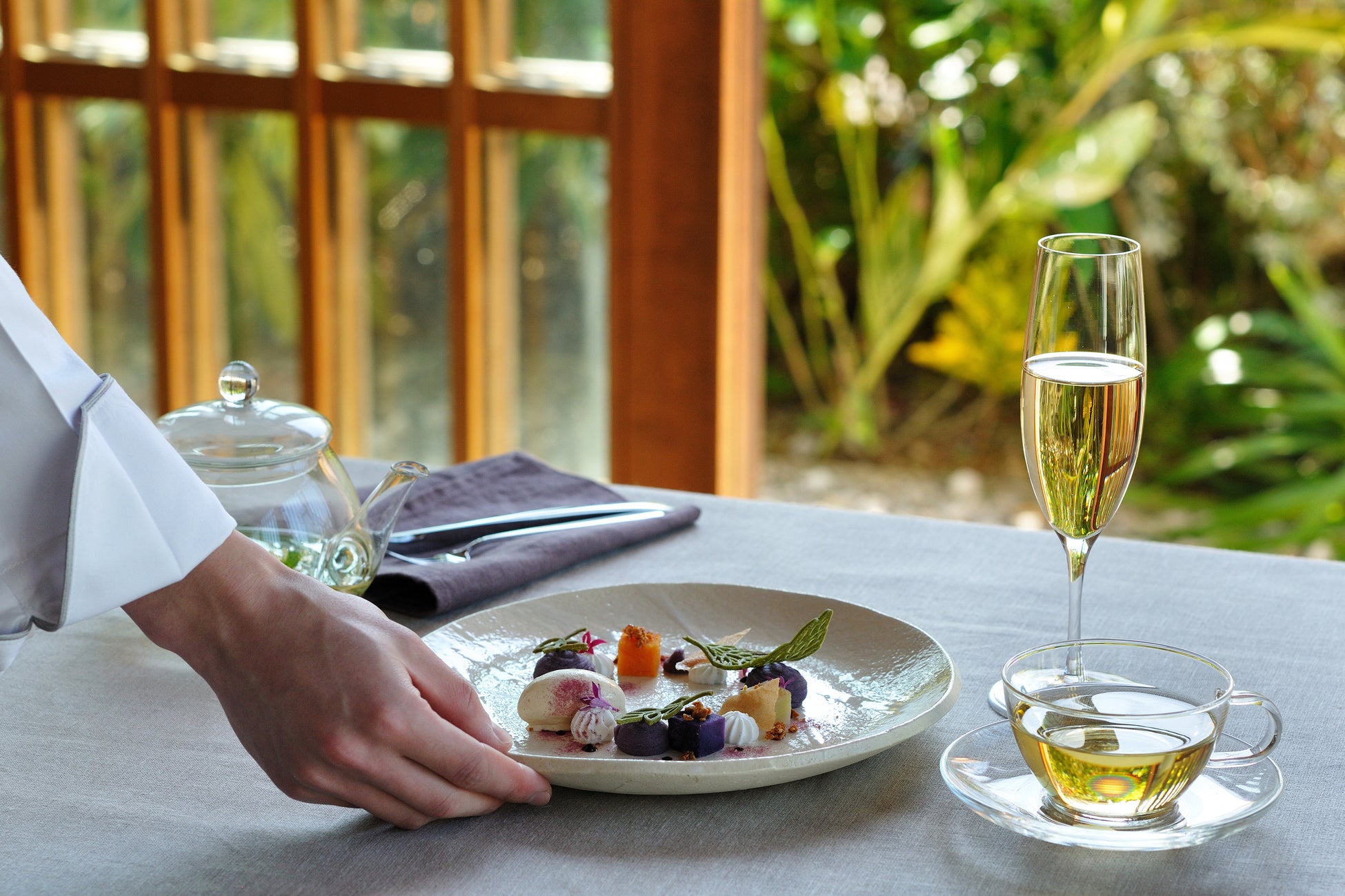 3 海風が抜ける空間で、目の前でシェフが仕上げるデザートを愉しむ