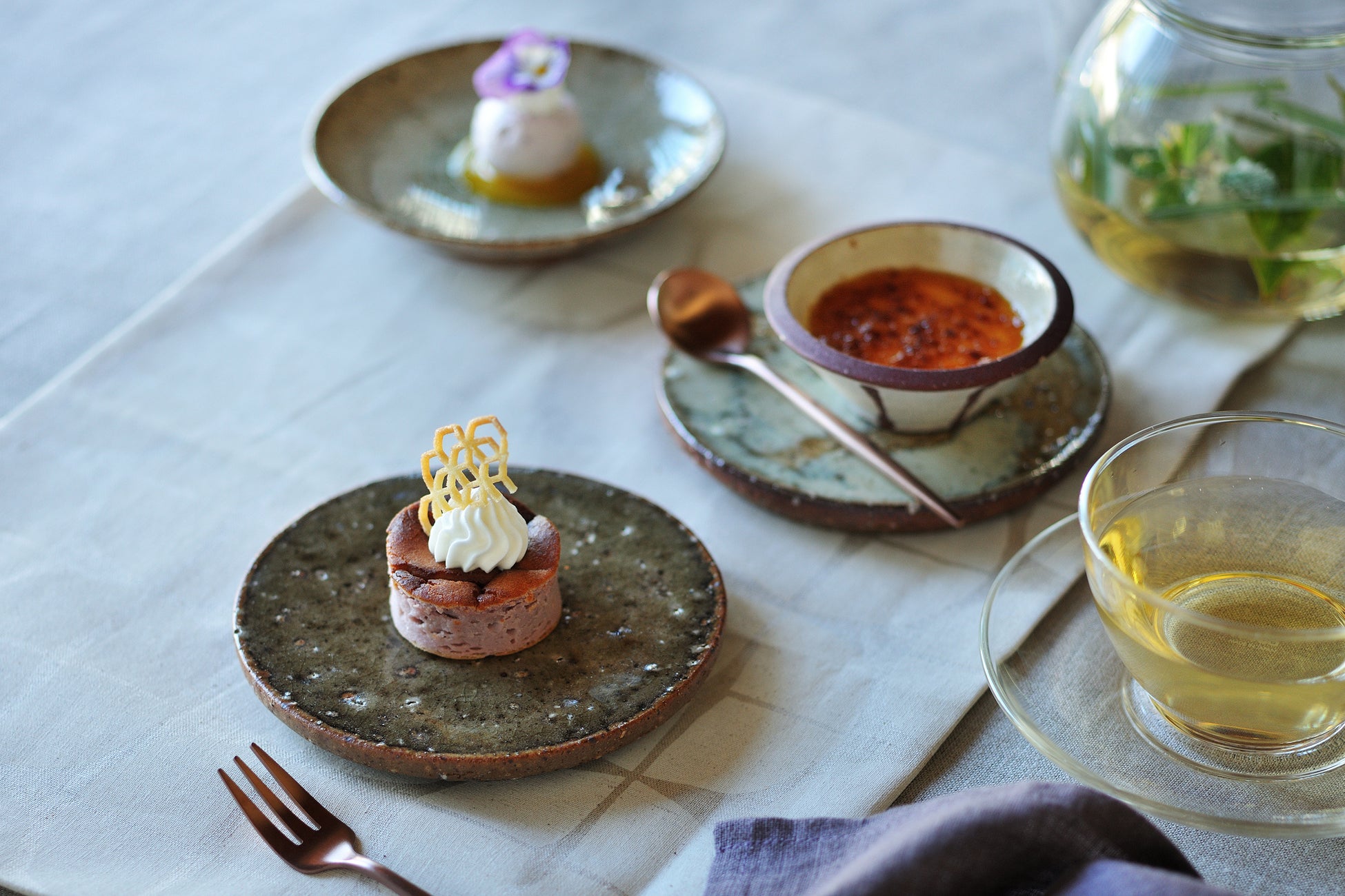 ~素材の香りや味わいを知る紅芋テイスティングから始まり、パティシエが目の前で仕立てる、技と共に味わうを華やかな一皿。コース仕立てでデザートを堪能する優雅な時間~