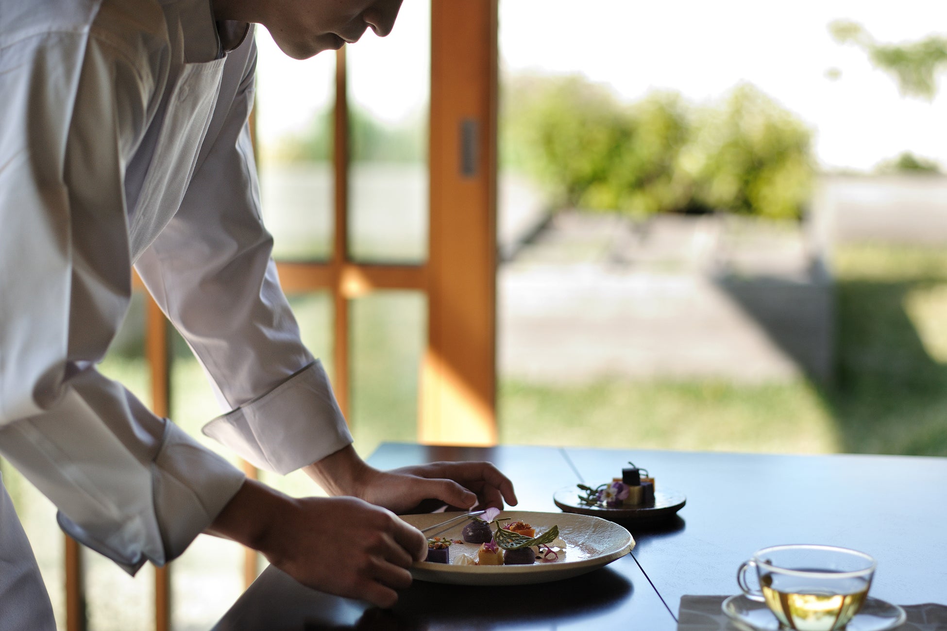 本プログラムは、施設内のキッチンスタジオ「ゆがふキッチン」にて、シェフが目の前で仕上げたデザートを提供します。目の前に広がる海から心地よい風が吹き抜ける開放的な空間で、出来立ての香りや食感を楽しめるのは、この場ならではの魅力です。紅芋の奥深さとシェフのこだわりが交わる、贅沢な時間が広がります。