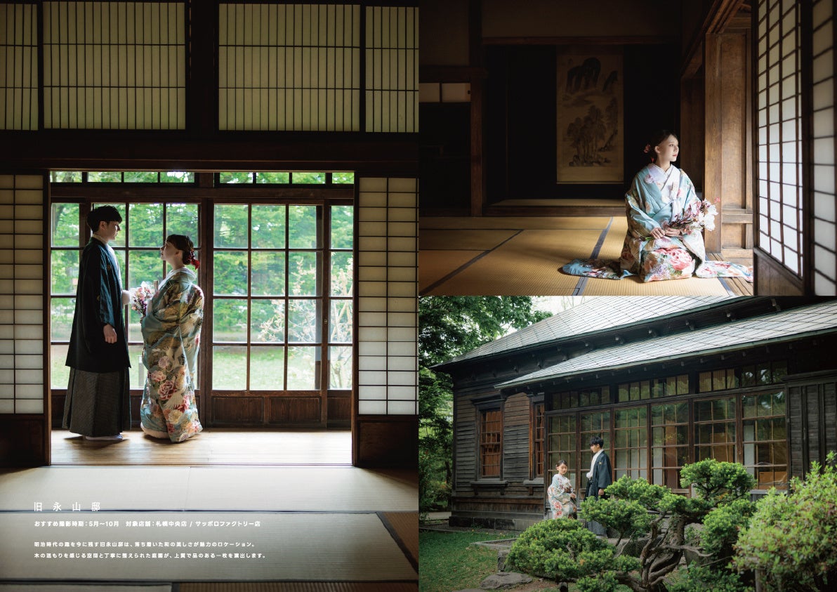 広大な自然を活かしたダイナミックなビジュアル 季節ごとのロケーション提案(雪景色・新緑・花畑など) 実際の撮影シーンを想起させるストーリー性ある構成