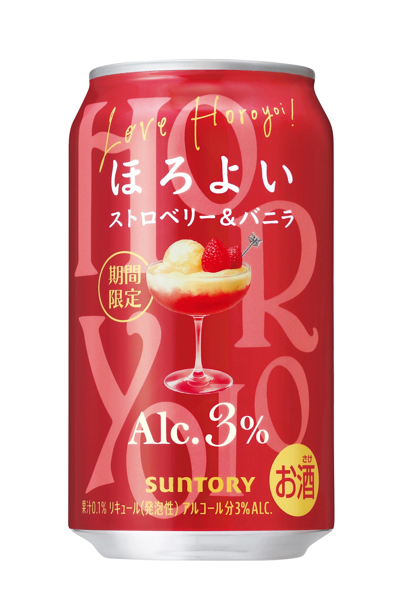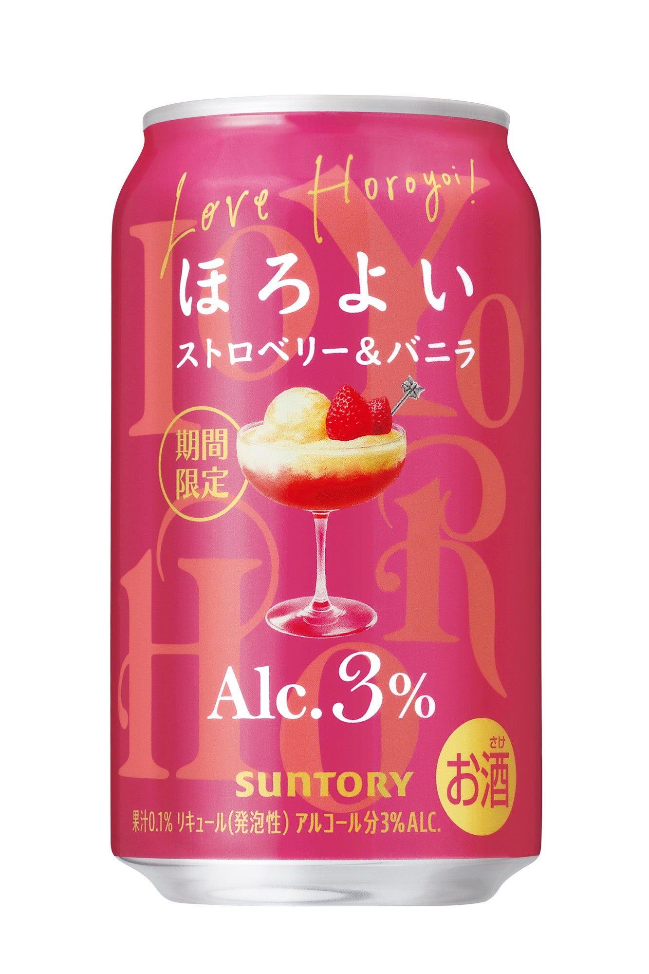 サントリー(株)は、「ほろよい〈ストロベリー&バニラ〉」を2026年2月3日(火)から全国で期間限定新発売します。