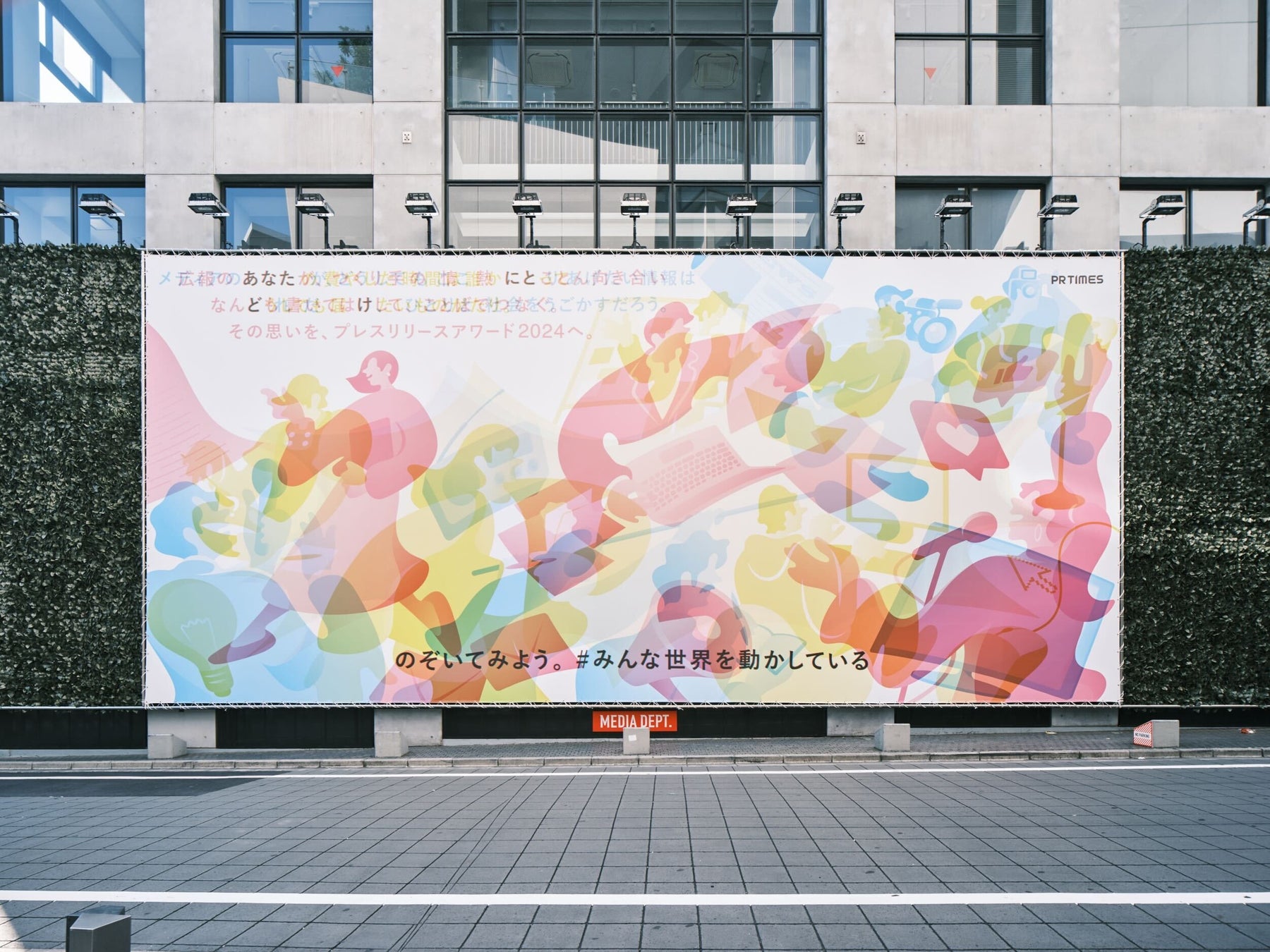 株式会社PR TIMES(東京都港区、代表取締役:山口拓己、東証プライム:3922)は、2024年7月22日(月)から8月4日(日)までの14日間、プレスリリースアワード2024のメッセージ広告「のぞいてみよう。#みんな世界を動かしている。」を、東京・渋谷公園通り「MEDIA DEPARTMENT TOKYO」(所在地:東京都渋谷区宇田川町19-3)の大型看板(縦6.38m×横14m)に掲出いたします。また、古舘伊知郎さんの音声実況ガイドもお楽しみいただけます。