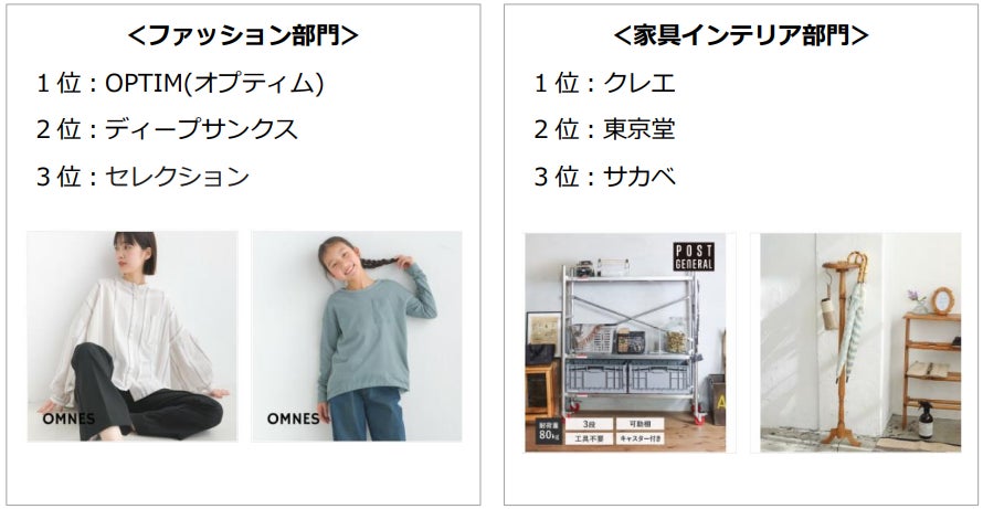1位のファッションメッセージは、サイズ展開がMサイズからLLサイズまでと幅広く、カラーバリエーションも定番カラーから差し色まで豊富に揃っています。トレンドを取り入れたデザインながら品質もよく、品揃え、デザイン、品質、価格のバランスの良さから支持されています。また、ネット注文のみならず実店舗での顧客対応も評価されています。