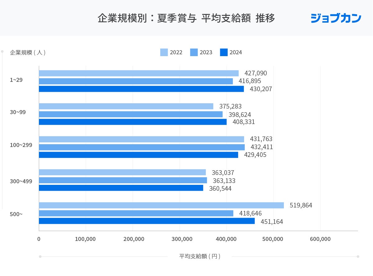・2022年~2024年の夏季賞与平均支給額は40万円台前半で推移