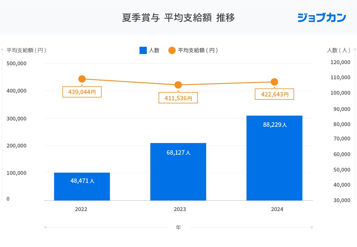 2024年の夏季賞与平均支給額は「422,643円」ジョブカンが夏季賞与の実態調査を性別・年齢別・企業規模別に実施