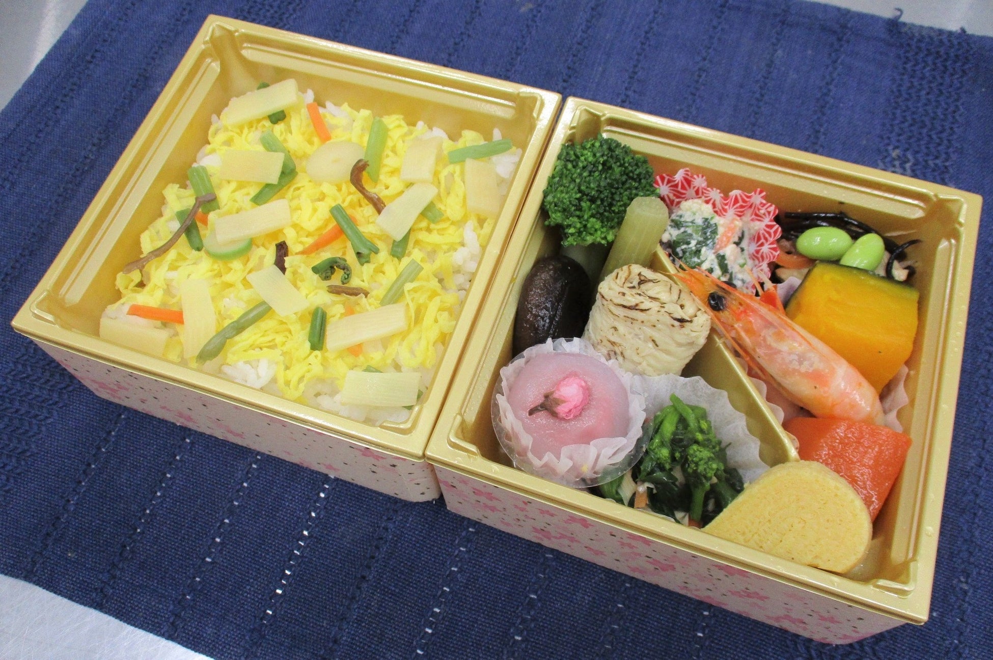 春色のお惣菜と筍ちらし寿司の二段弁当です。