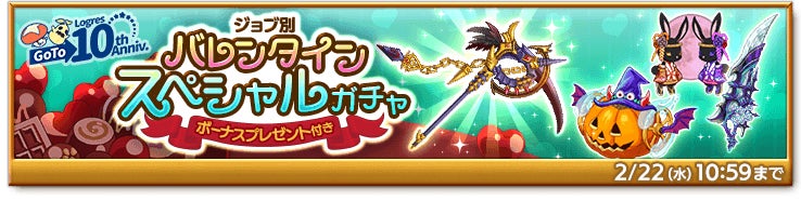 人気武器と定番ガチャでは手に入らない期間限定武器が確率アップした、GoTo10周年&バレンタイン記念の特別なガチャをお見逃しなく!
