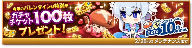 スマホ向け本格オンラインRPG『剣と魔法のログレス いにしえの女神』<今年のバレンタインは特別ログインでガチャチケ100枚プレゼント!>