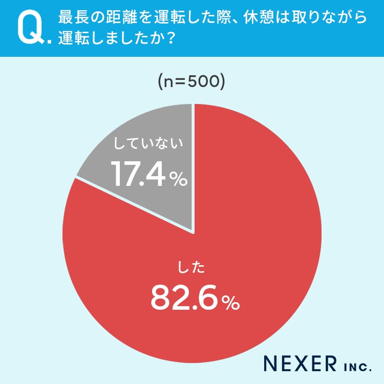 82.6%と8割以上の方が最長の距離を運転した際、休憩を取りながら運転していたと回答しています。