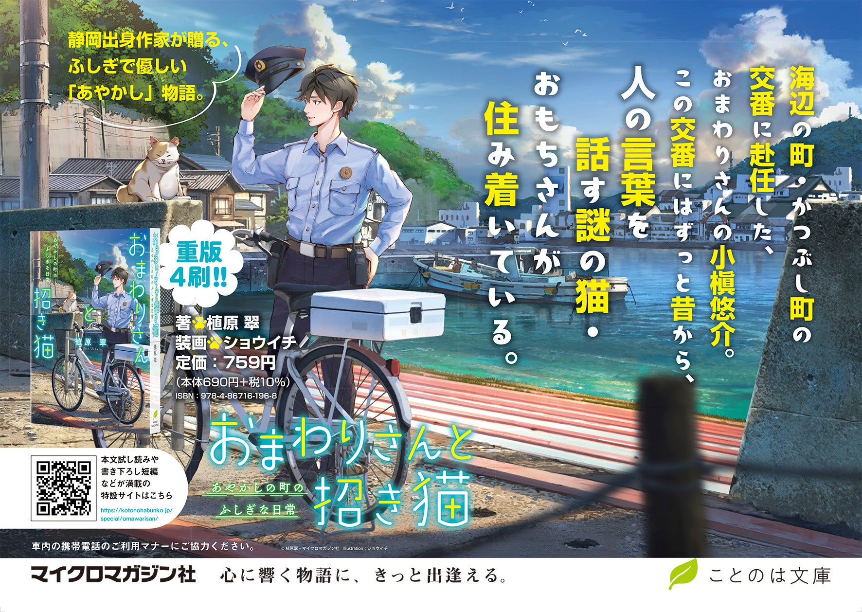マイクロマガジン社(東京都中央区)は、『おまわりさんと招き猫』シリーズ(著:植原翠/装画:ショウイチ)の舞台のモデルとなった静岡県にてトレインジャック広告を実施いたしました。