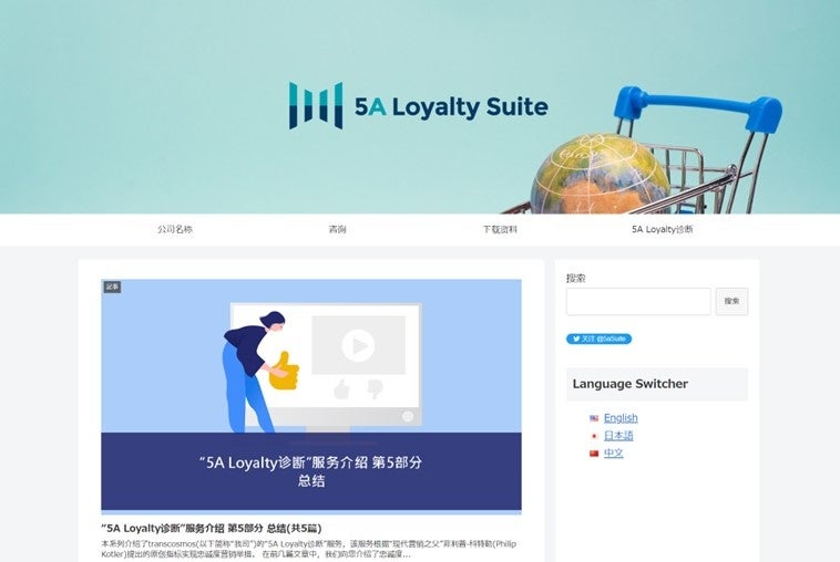公開された中国語版Webサイトでは、「5A Loyalty診断サービス」の紹介記事を公開しています。日本語版Webサイトで公開されている業界リーダーへのインタビュー、開催セミナー情報などのコンテンツについても、追って中国語版を公開予定です。