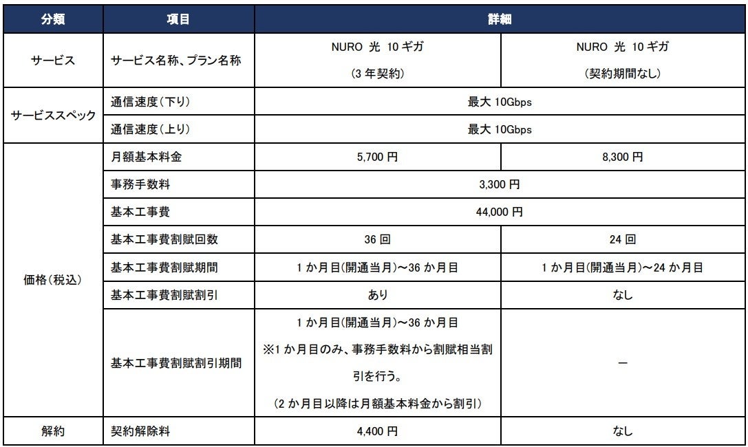 ■「NURO 光 10ギガ」プラン(2024年4月2日時点)