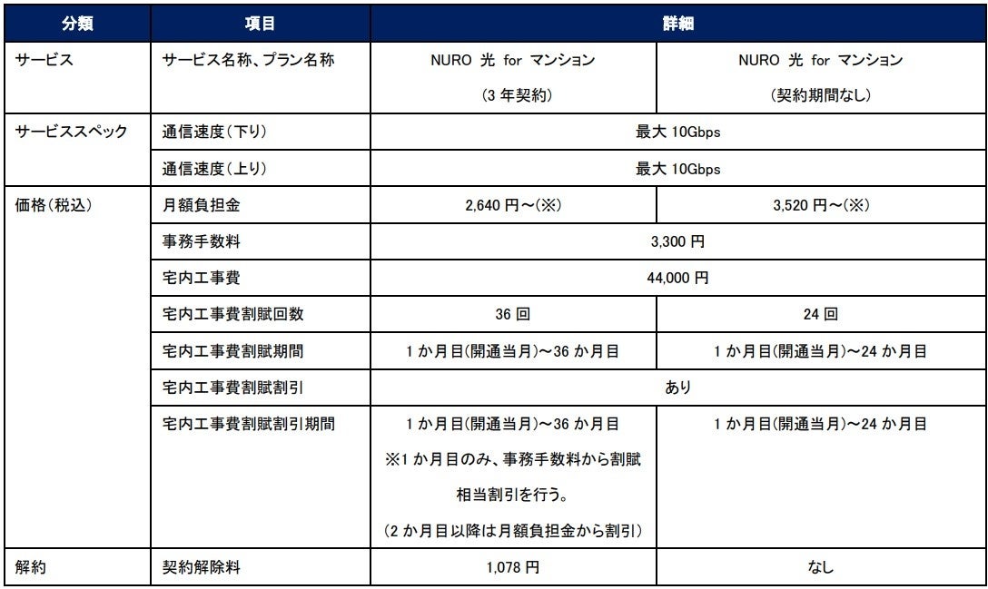 ※「NURO 光 for マンション 10ギガ」プラン詳細はサービスページを参照ください。