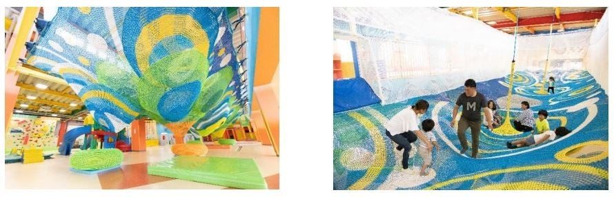 「そらトンネル」は天井から吊るされたトンネル型のネットの中を下から上に上るアクティビティとなっており、水色をメインとしたネット内で、足元に敷き詰められたボールの上を歩く「ふわふわ」とした感覚は、まるで空に向かって登りながら空中散歩をしているような感覚を楽しむことができます。「みずたまぽんぽん」はネットの下にカラフルな水玉模様に敷き詰められたボールの上を「ぽんぽん」跳ねることができるアクティビティとなっており、お子様はその上で浮遊感を存分に楽しむことが可能な施設となっております。