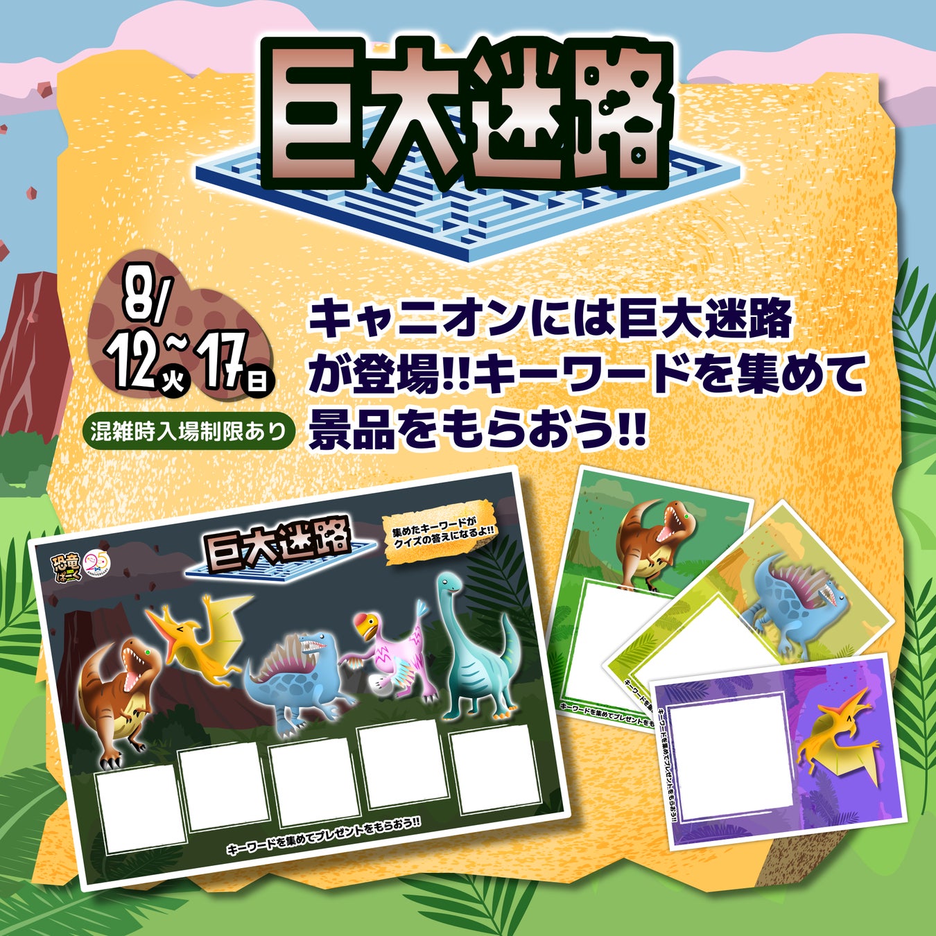 ダイナシティウエストキャニオンに巨大迷路が出現!!迷路内の5か所のチェックポイントに立ち寄りキーワードを集めて景品をゲットしよう!