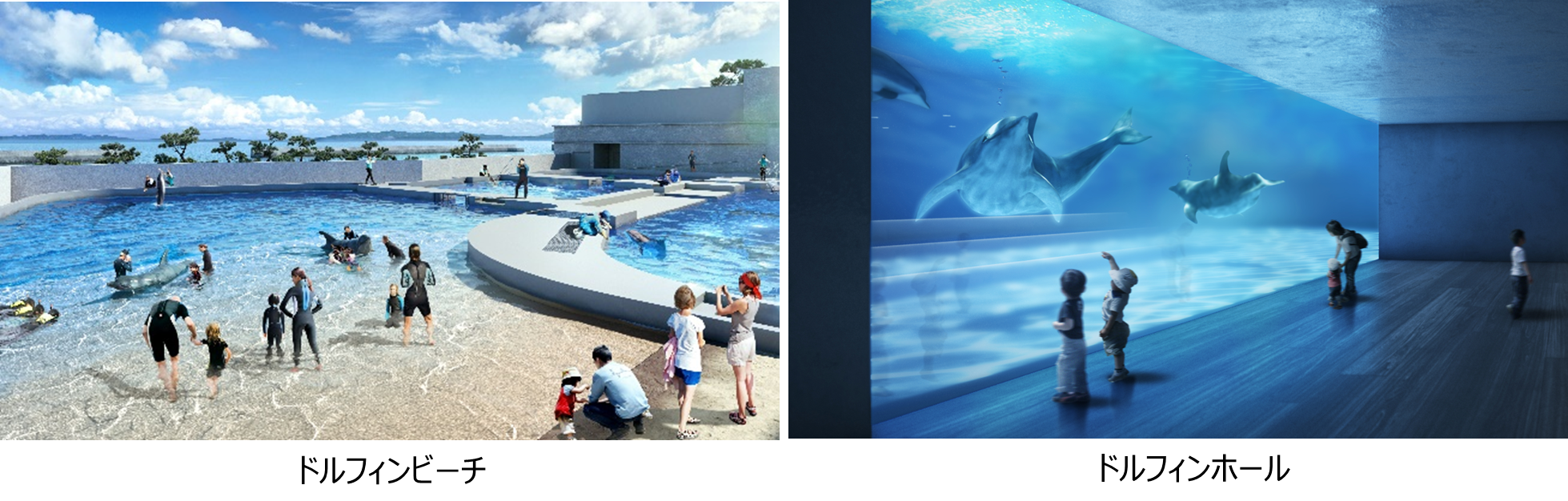 ●イルカの生態を間近で学べる施設を展開 ・イルカとふれ合い生態を学ぶことができる「ドルフィンビーチ」 ・横幅12m×高さ2.7mのワイドな水槽の前でイルカを観察できる「ドルフィンホール」