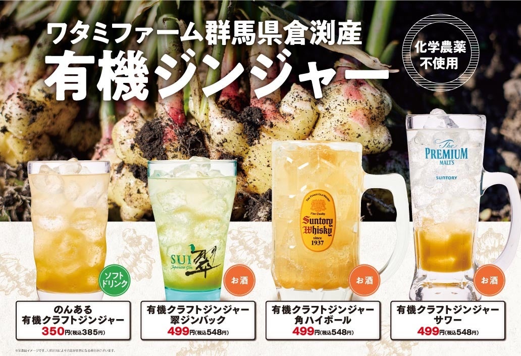 3月から4月に旬といわれるアスパラはこの時期に最も新鮮でおいしいものが出回ります。「まるごとアスパラの肉巻きフライ」、春キャベツと一緒に楽しめる「アスパラとキャベツのガーリック炒め」は春を感じることができる逸品となっております。期間限定のドリンクはワタミファームで育てた有機生姜を使用した有機生姜シロップで4種のドリンクをご用意しております。ワタミファームの有機生姜シロップは、すりおろした生姜をまるまる使用し有機レモンをプラスしており生姜好きの方には是非飲んでいただきたい商品となっております。是非この機会に鳥メロでご賞味ください。