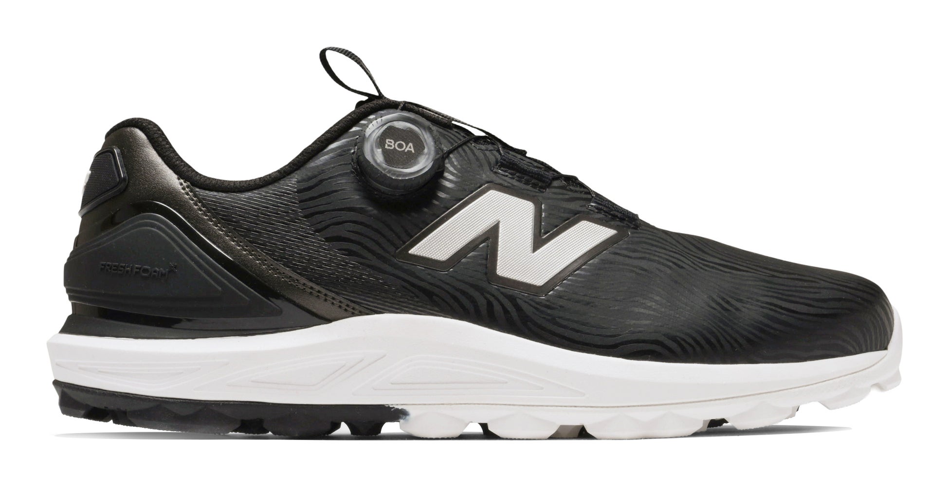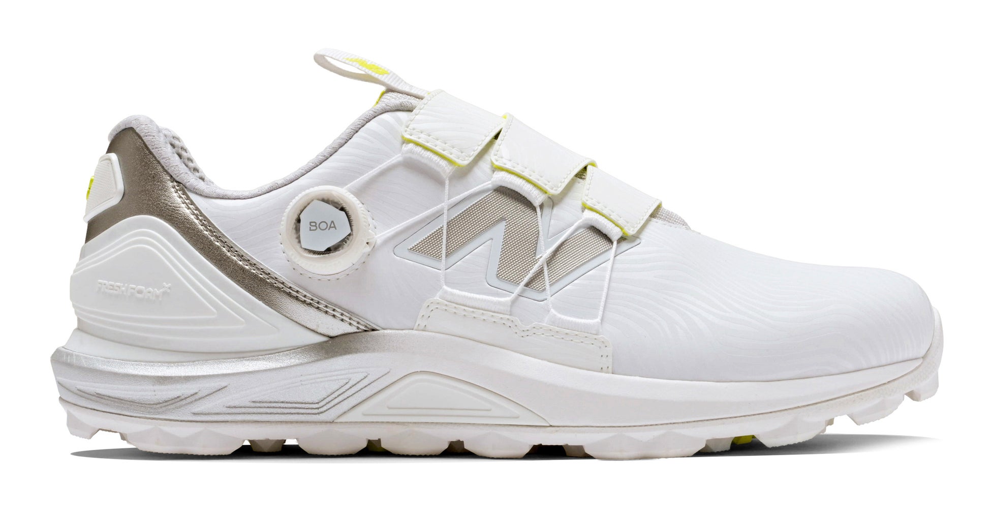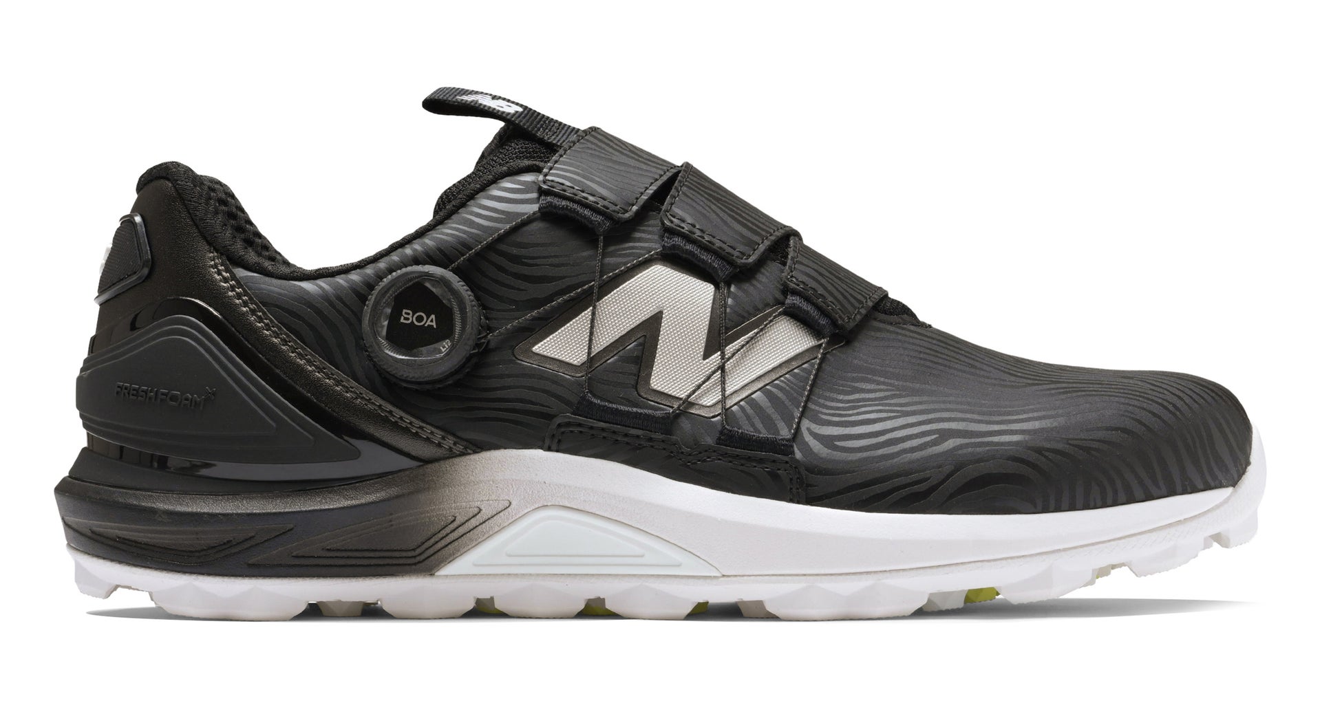 18ホール歩いても高い快適性能を発揮する独自のクッション機能「FRESH FOAM X」を採用。インソールにはInfiniGRIPを採用。ナノフロント🄬の高い密着性が足の滑りを抑え、安定性を高めます。