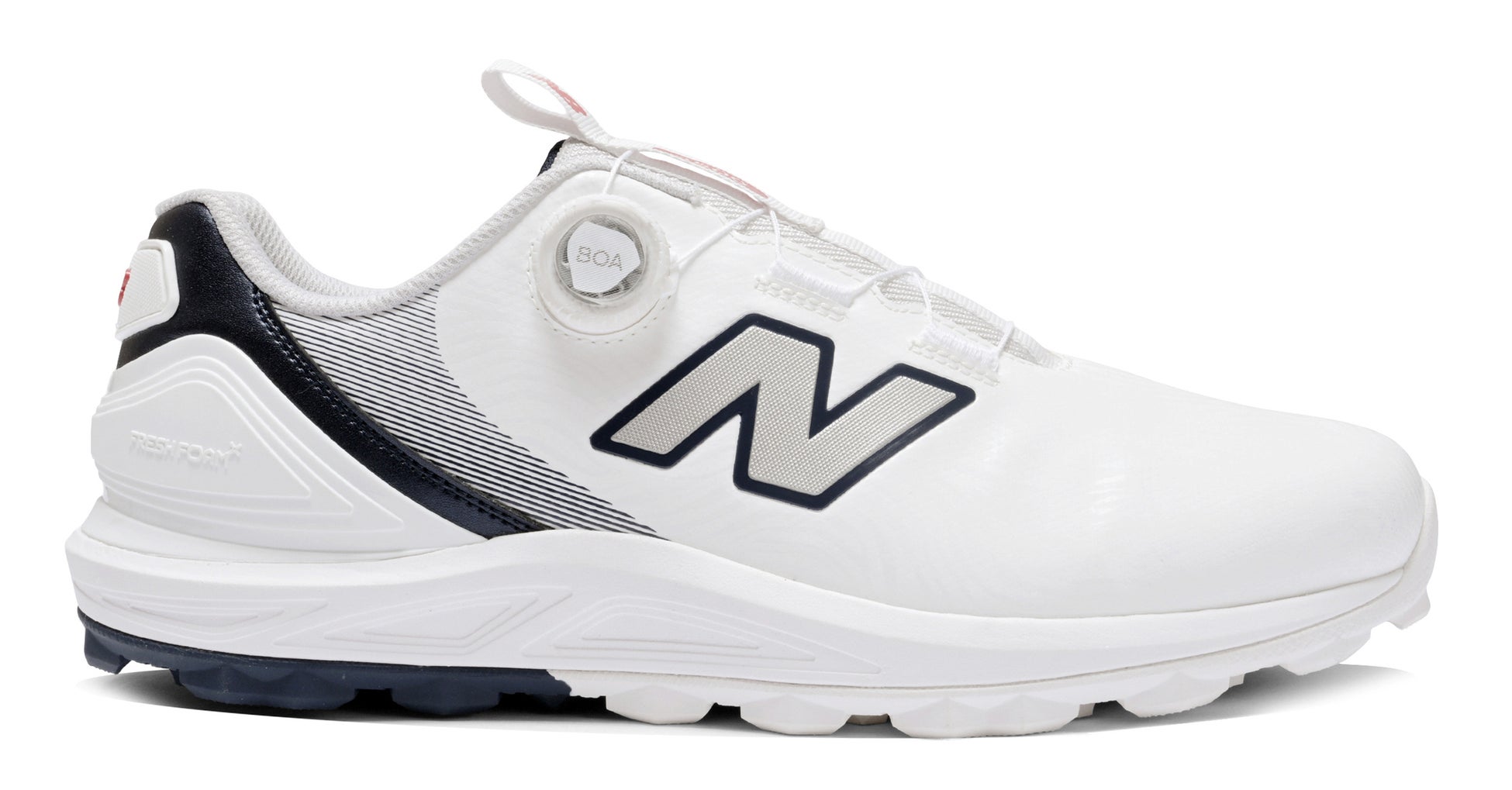 「Fresh Foam X の柔らかなクッション性が、長時間のラウンドや練習でもずっと快適な履き心地を保ってくれます。スイング時にはしっかりとグリップし、力を逃がさない安定感があり、歩きやすさとプレー性能、その両立を叶えた最高の一足です。」
