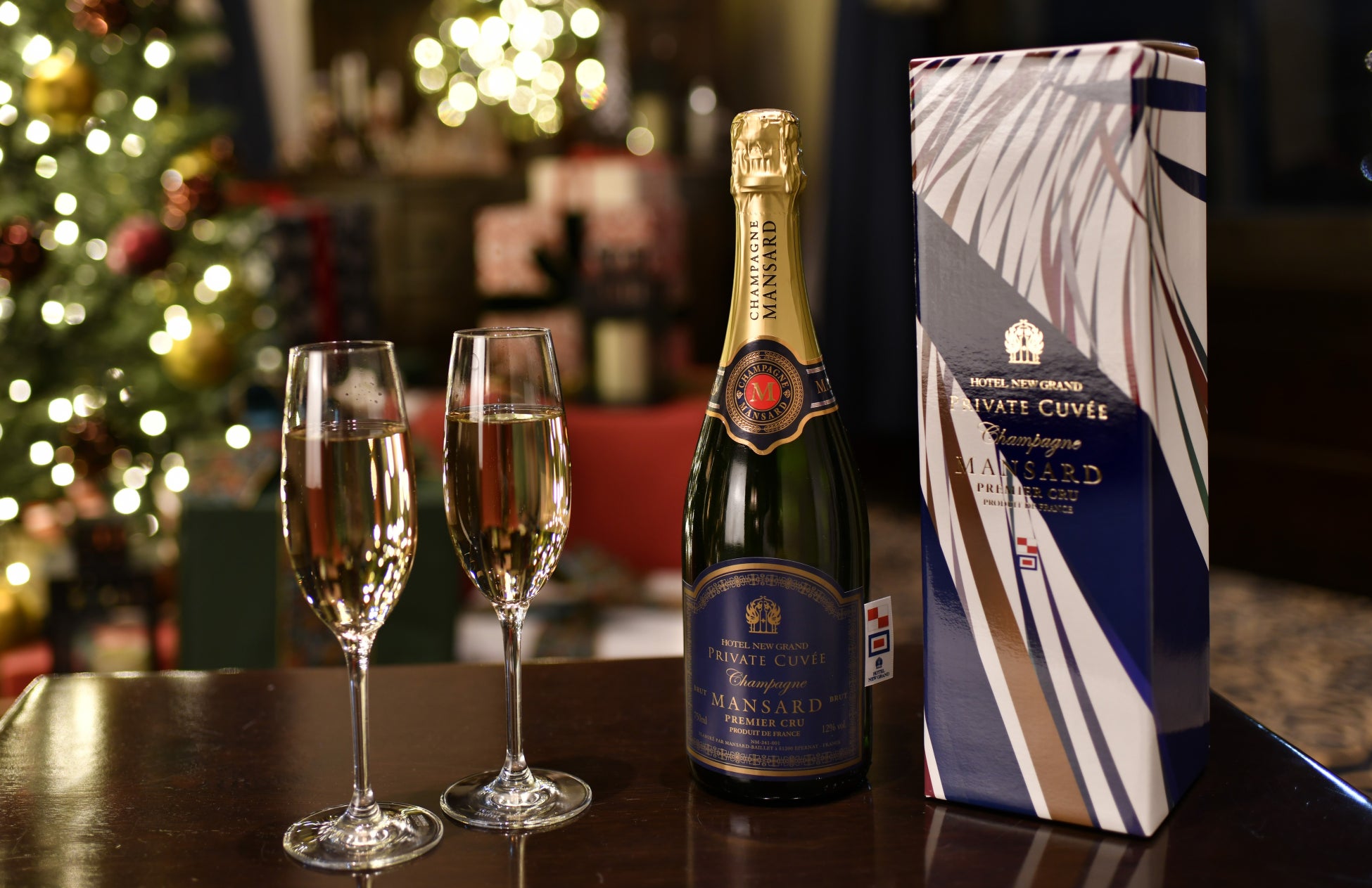 国内では当ホテルでしかお召し上がりいただけないマンサール社のシャンパン プルミエクリュ。果実味と酸味の調和がとれたリッチで上質な味わいの希少ワインをもっとお楽しみいただけますよう、ホテルオリジナルデザインラベルでギフトボックスに入れてご用意しております。