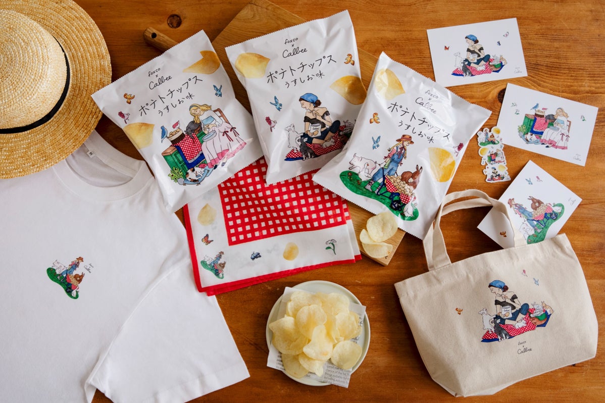 『ポテトチップスクリエイターズパッケージ うすしお味』の発売を記念して、foxcoオンラインショップで「foxco×カルビー コラボレーショングッズ」の発売が決定。Tシャツや雑貨を受注生産で展開します。