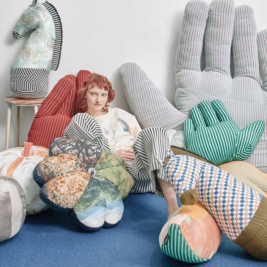 人や空間を装飾するオブジェを制作するブランド〈ポートレイトラボ〉から、お部屋を彩るファブリック オブジェを始め、リラクシングウエアや靴下などを展示いたします。