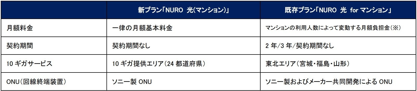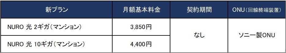 「NURO 光 for マンション」、新プランの提供および価格変更について