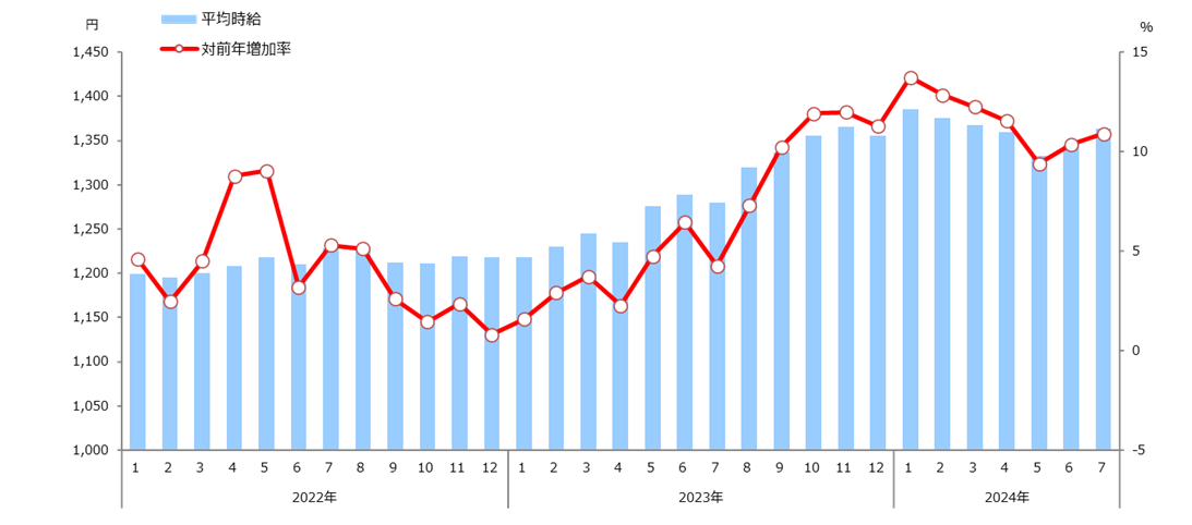 2024年7月度 アルバイト平均時給調査 全国の平均時給は1,364円