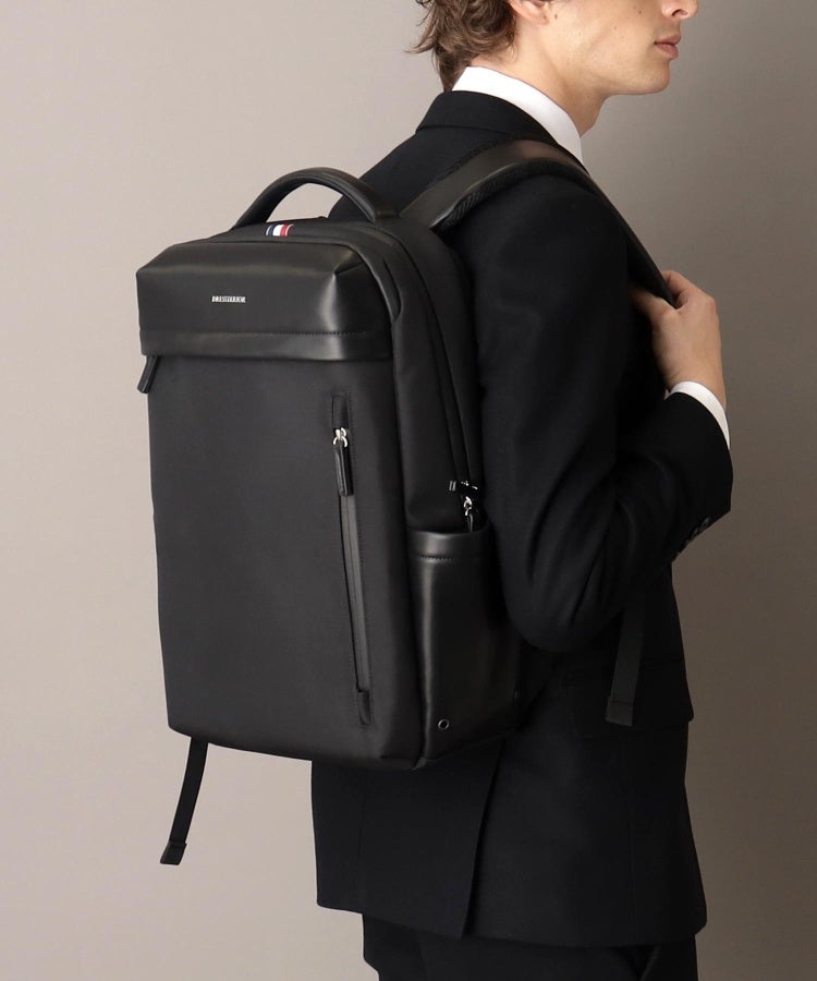 メインルームにはノートPC収納用のポケットが1つ、仕分けに便利な小さいポケットを3つ搭載しています。トップと前面にも収納スペースが豊富になり、傘やペットボトルが入るサイドポケットもあります。背中に貴重品を収納することができるセキュリティポケット、キャリーケース固定ベルトを搭載した、ビジネス用にも大変おすすめなバッグです。