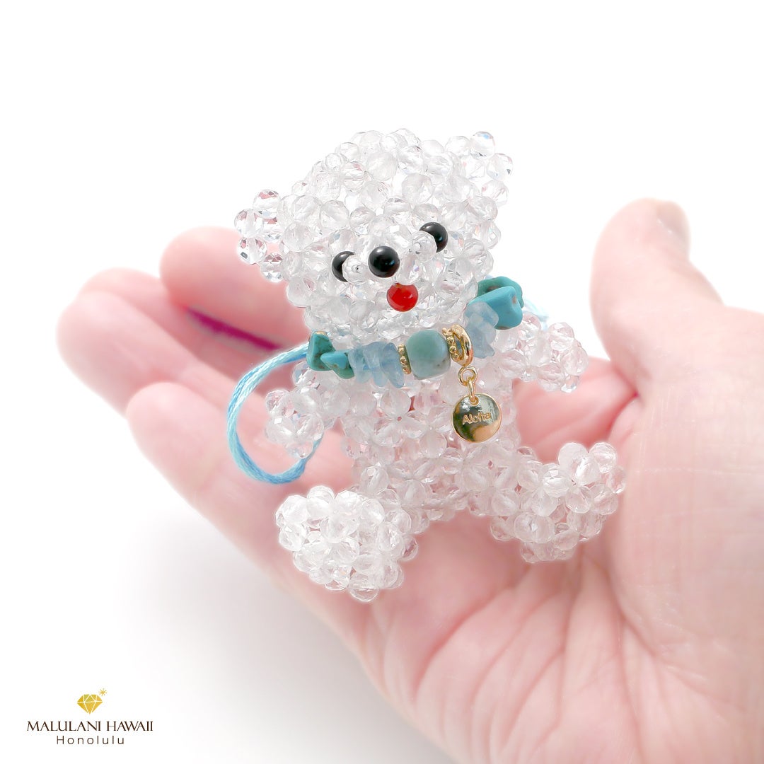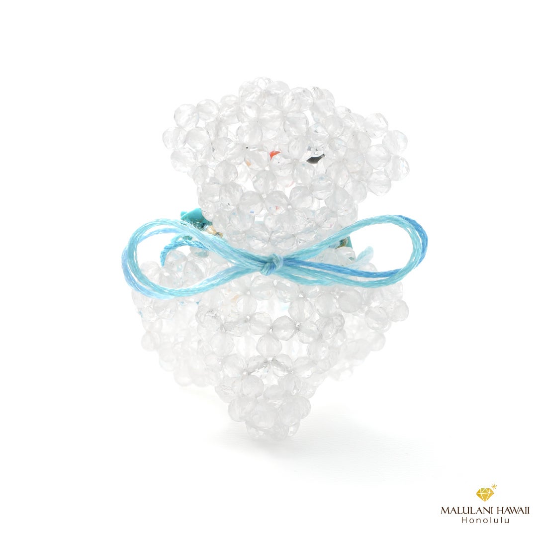 約320個、キラキラと輝くカット水晶を使用し、ひとつひとつ丁寧に編み上げたクマは、手のひらサイズの小さなお友達。