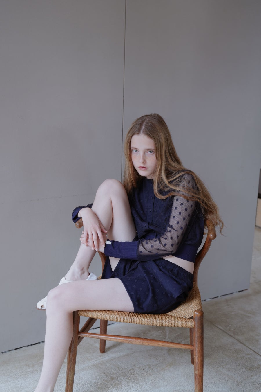 ルミネ新宿 ルミネ2でのPOP UP STOREにて新作2025 SPRING SUMMER COLLECTIONから、Flower tulle cardiganに会場限定カラー Navy が登場いたします。
