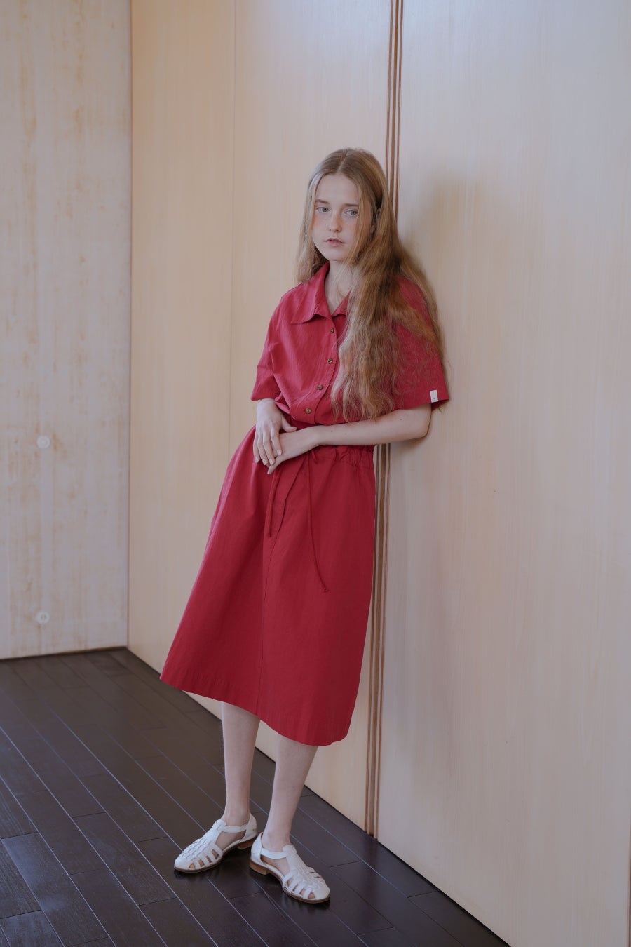 しっかりめのコットン生地でシャツとワンピースがドッキング。