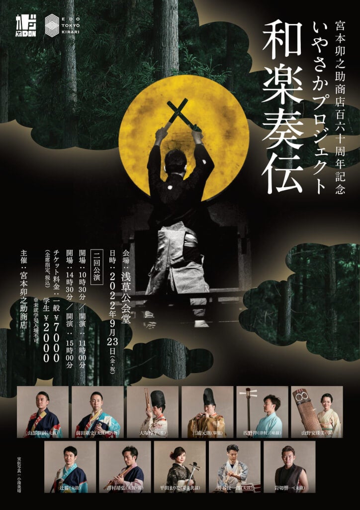 株式会社宮本卯之助商店(代表:宮本芳彦)主催、『宮本卯之助商店百六十周年記念 いやさかプロジェクト 和楽奏伝』が2022年9月23日(金・祝)に台東区立浅草公会堂(東京都台東区浅草1-38-6)にて上演されます。