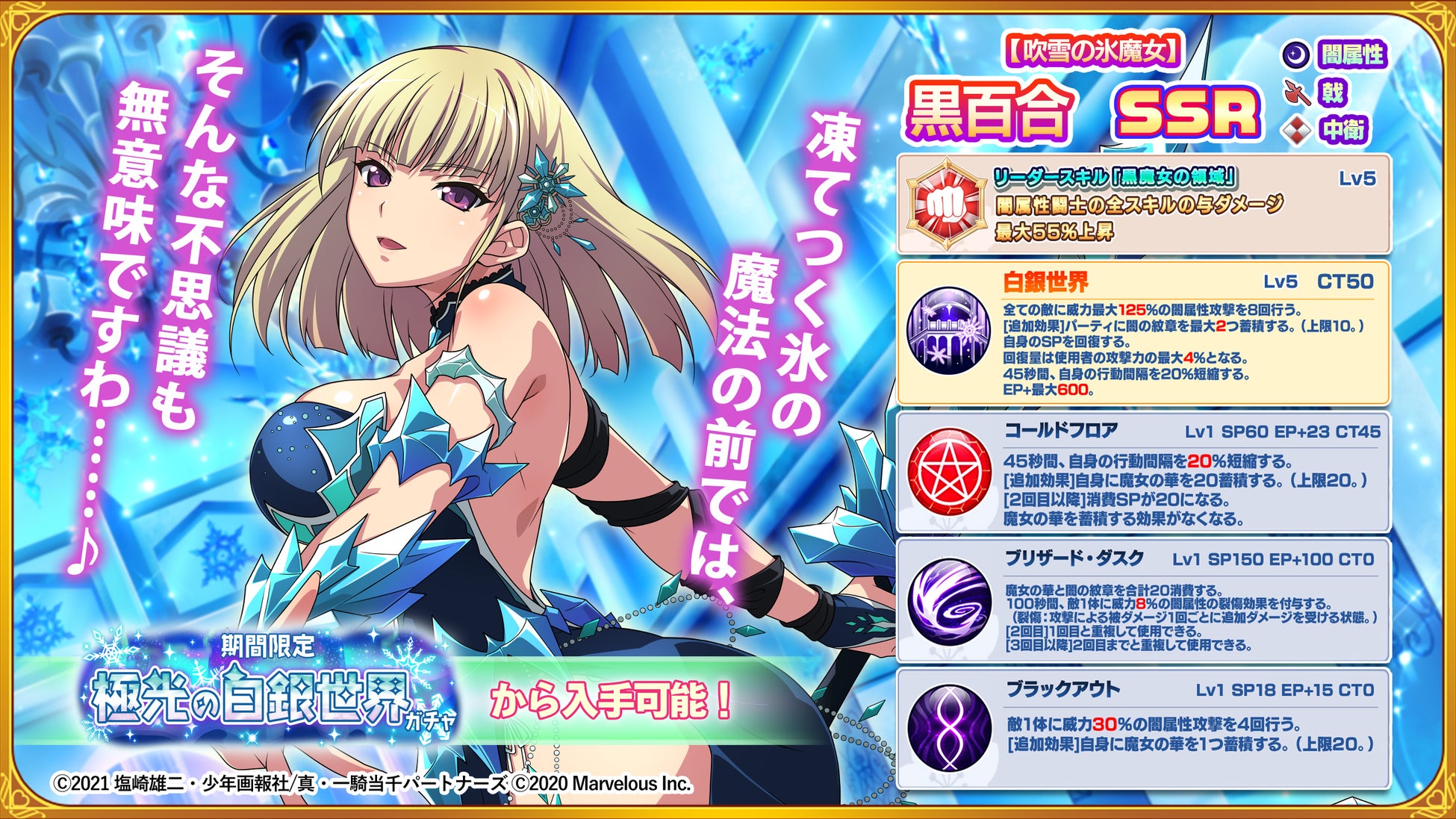 同ガチャでは、「【吹雪の氷魔女!?】黒百合」の排出率が他の同レアリティの闘士よりも高くなっております!