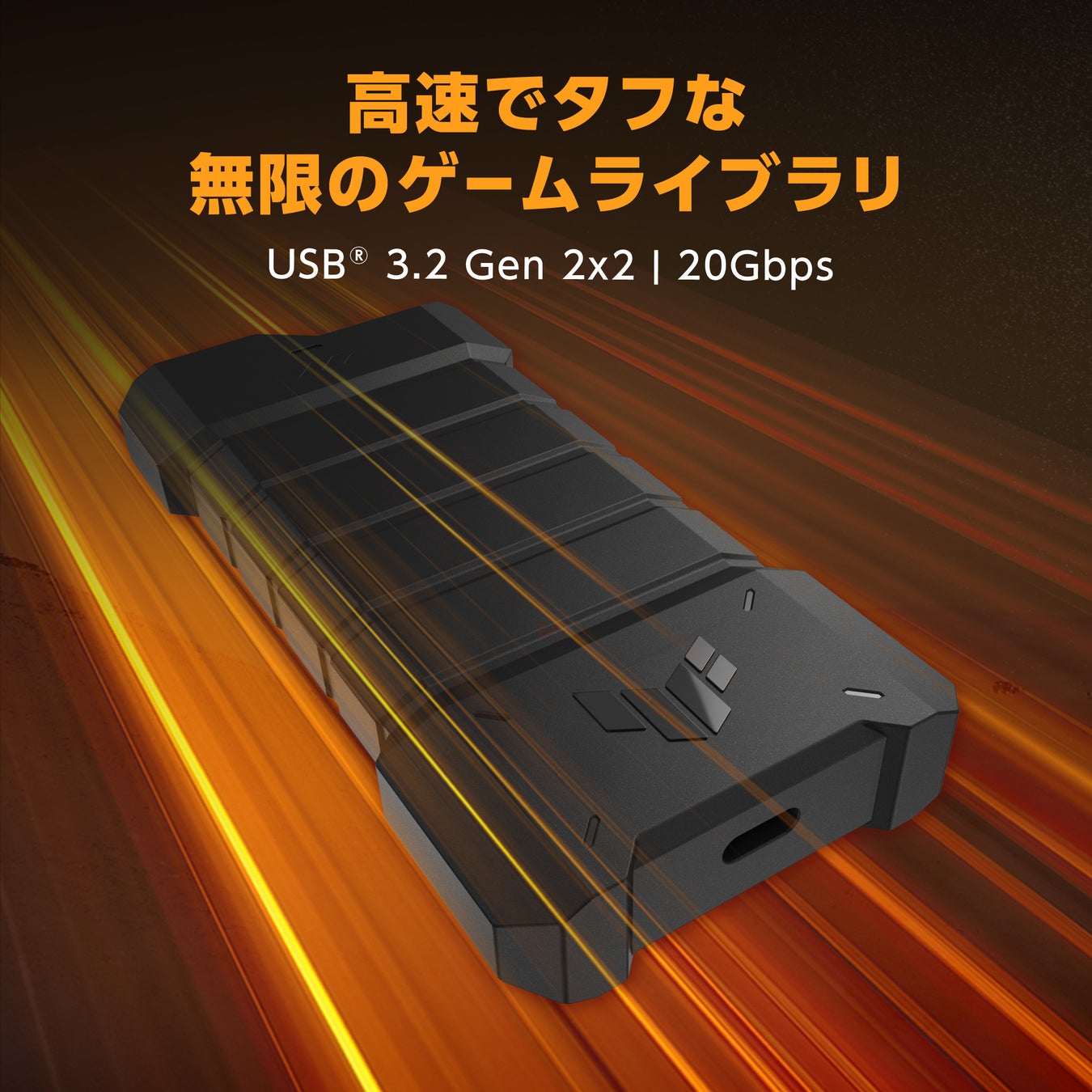 最大20GbpsのUSB-C® 3.2 Gen 2x2接続に対応。高速SSDのパフォーマンスをUSB接続でも発揮できます。