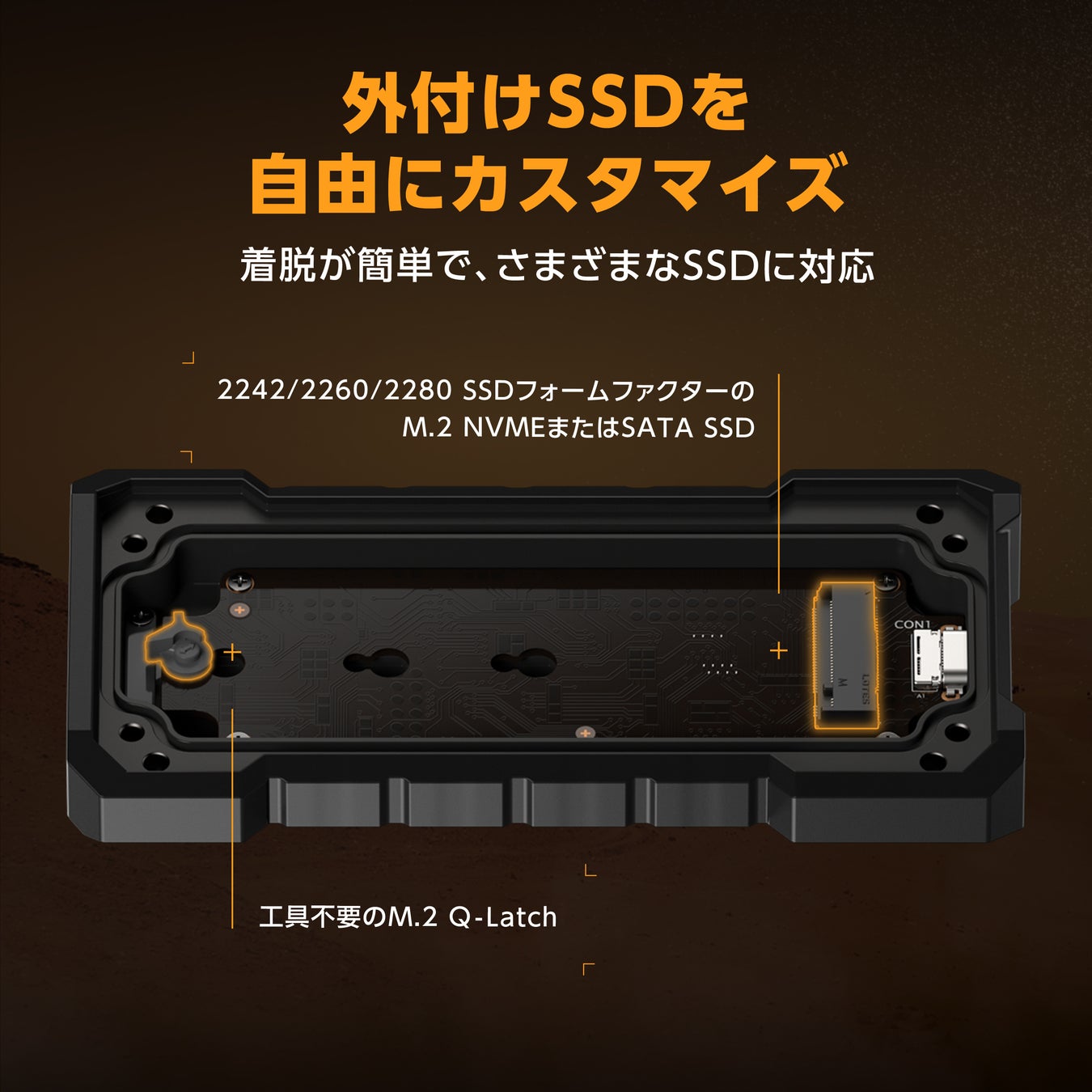 エンクロージャーはアメリカ国防総省のMIL-STD-810HおよびIP68規格に準拠し、外装には高耐久性のシリコンラバーを採用。衝撃に強く安心して使用できます。