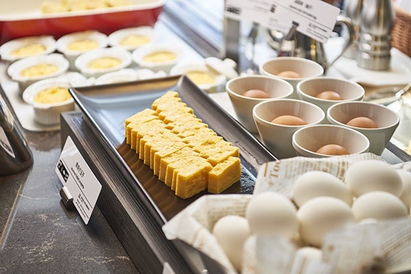 本プランでは、オールデイダイニング「クロスダイン」でのブレックファーストビュッフェ付きもお選びいただけます。洋食コーナーではご注文いただいてから作るオムレツや出来たての卵料理を、和食コーナーでは炊きたて御飯や焼き魚、味噌汁、中華コーナーでは薬味を揃えたお粥など、皆様にもご満足いただける品揃えです。