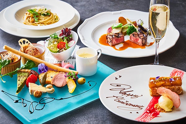 彩り豊かなオードブルプレートや季節ごとに変わるパスタ、メイン料理のサーロインのグリリアータは牛すじや野菜から取った出汁を煮詰めた、素材をより引き立てるソースと一緒にお楽しみください。デザートでは、ご希望の方にはお好きなメッセージをお入れして提供いたします。さまざまなお祝いメッセージや日頃の感謝を伝えるメッセージなど、その瞬間を彩るメッセージを添えませんか。
