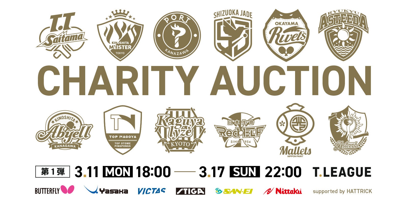 Tリーグでは、スポーツオークション「HATTRICK」(運営:バリュエンスジャパン株式会社)にて、Tリーグ公式チャリティーオークションを開催中!プレーオフ期間を挟んで2回開催いたします。