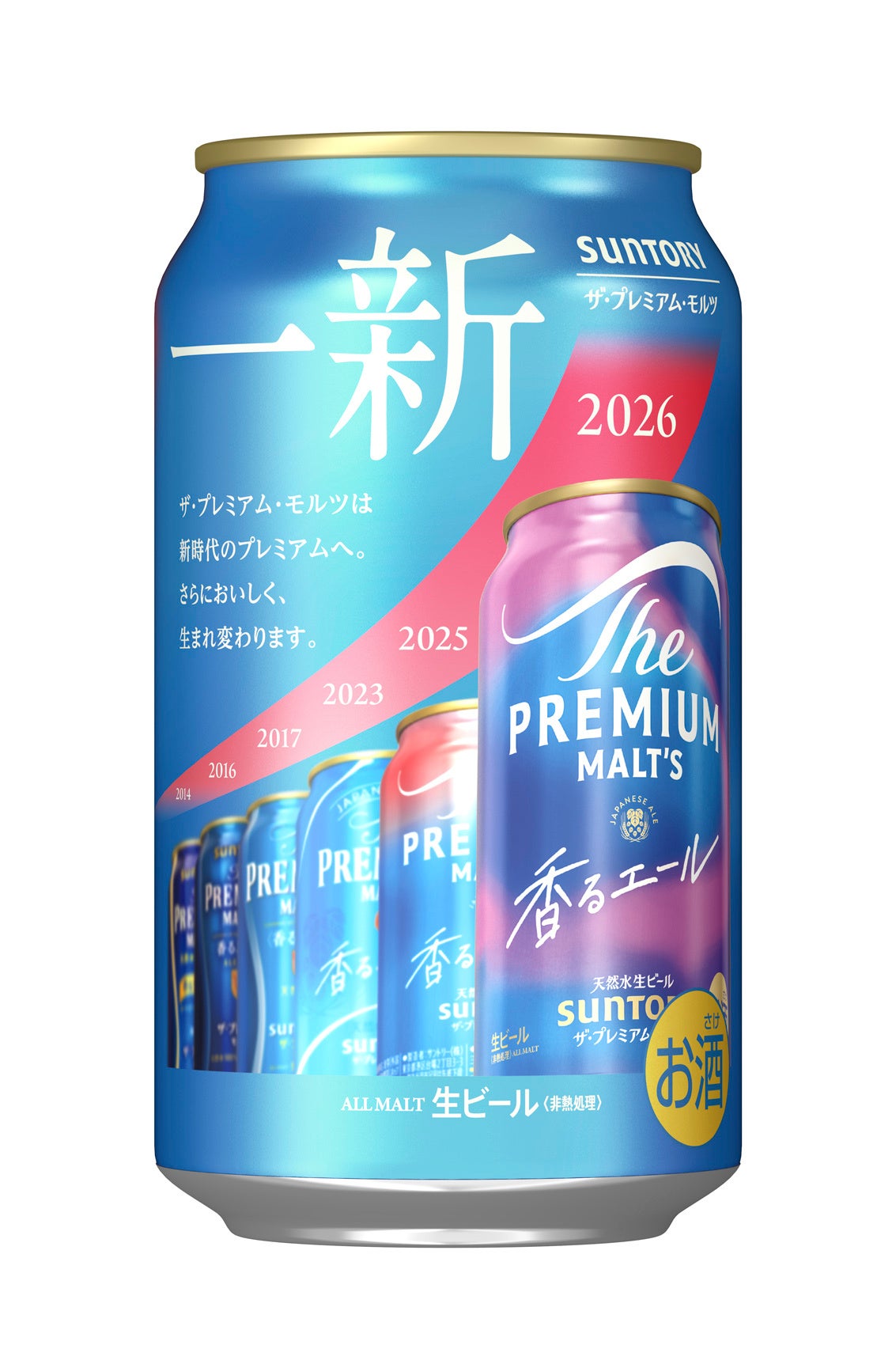 今回のパッケージは、「初仕込」の文言や「2026限定出荷」のアイコンを配し、特別感を表現しました。なお、25年12月下旬以降順次行う「ザ・プレミアム・モルツ」「同 〈ジャパニーズエール〉香るエール」のリニューアルに伴い、発売以来のパッケージデザインの変遷を、本商品の裏面にそれぞれあしらいました(ニュースリリースNo.14952参照)。