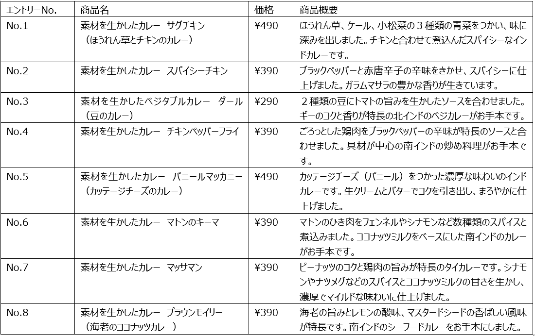 様々なレトルトカレーがあることを知っていただくべく、2019年より年に一度、レトルトカレー全商品を対象に人気投票を行っています。例年、「素材を生かしたカレー バターチキン」や「素材を生かしたカレー グリーン」など人気商品が上位を占めていますが、今回は目立たないけれど隠れた名作カレーを楽しんでいただけるキャンペーンを実施します。エントリー商品は、売上上位を除いたレトルトカレーの中から、おすすめ商品として無印良品スタッフの投票により選ばれた8商品です。キャンペーン特設サイトあるいは無印良品の公式ツイッター上で、食べてみたい商品に投票ください。